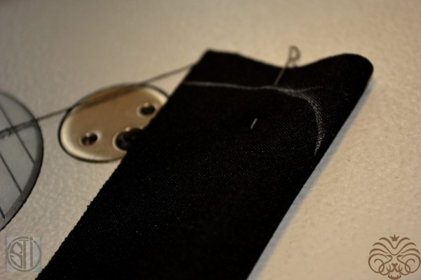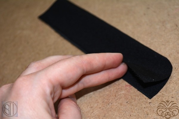 10. С лицевой стороны закрепляем середину застежки, чтобы избежать смещение деталей.