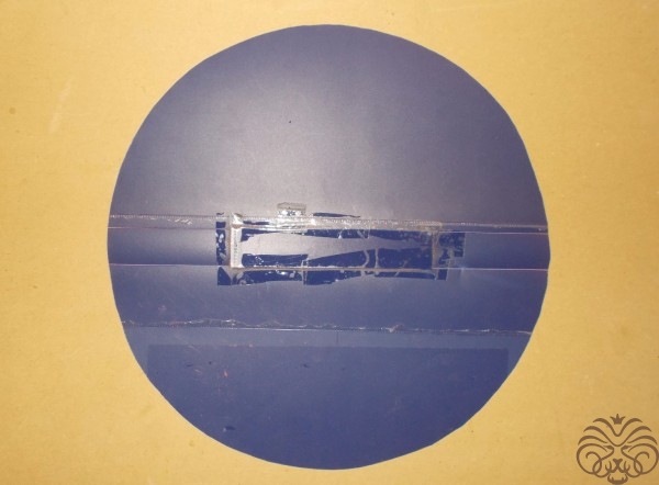 Начиная работу, мы вырезаем из пластикового листа круг, начертив его при помощи ровного предмета (например, крышки от цинкового ведра):