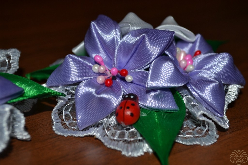 Кружево, атласные ленты, тычинки, божьи коровки.