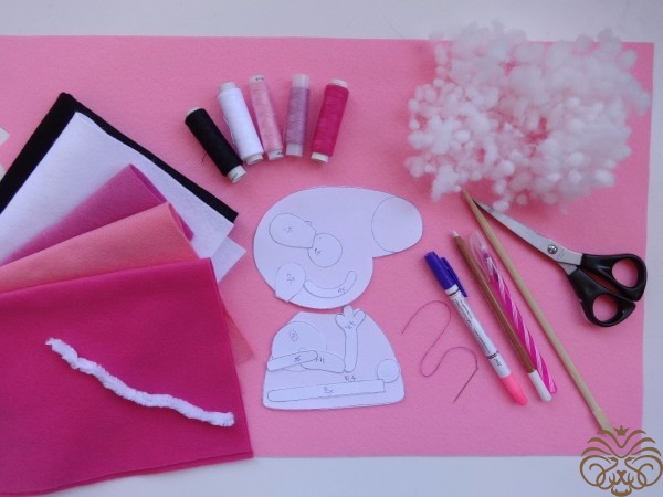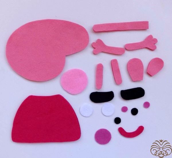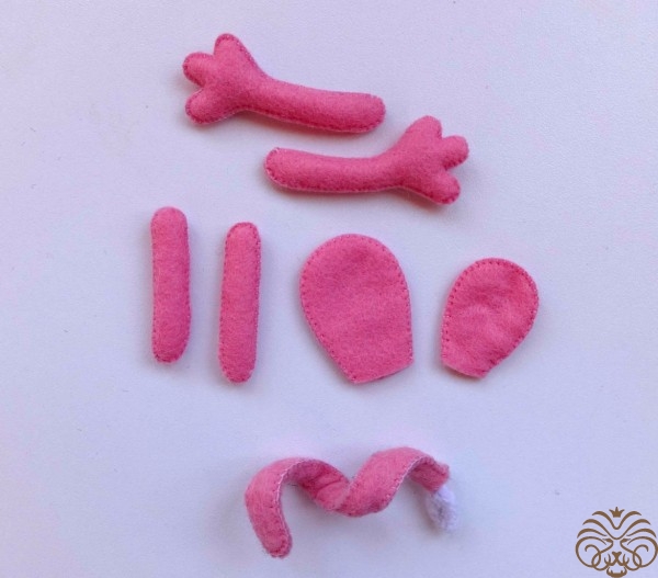 Голова, ручки, ножки, ушки, хвостик - на розовый фетр