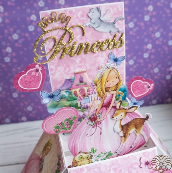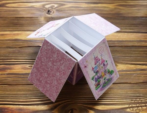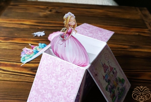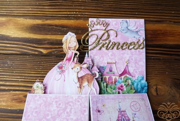 В наборе бумаги были очень красивые карточки с принцессой и замком, поэтому в размерах окошечек я отталкивалась от размеров карточек.