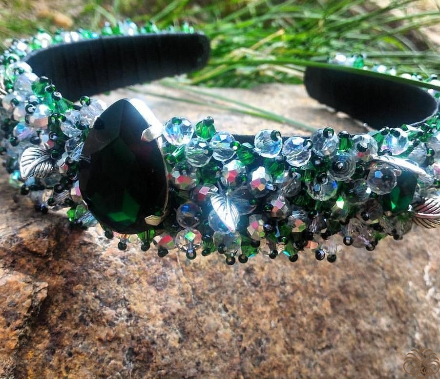 Обруч для волос из бусин и камней. Отлично дополнит вечерний наряд и вы превратитесь в королеву)))