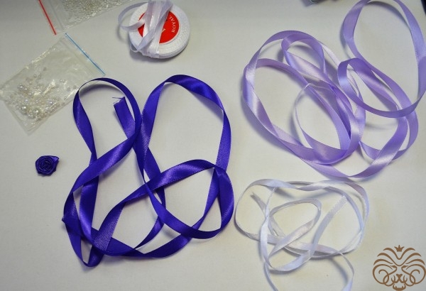 2. ленточка атласная 10 мм шириной 2-х цветов, и одна атласная лента шириной 5 мм.