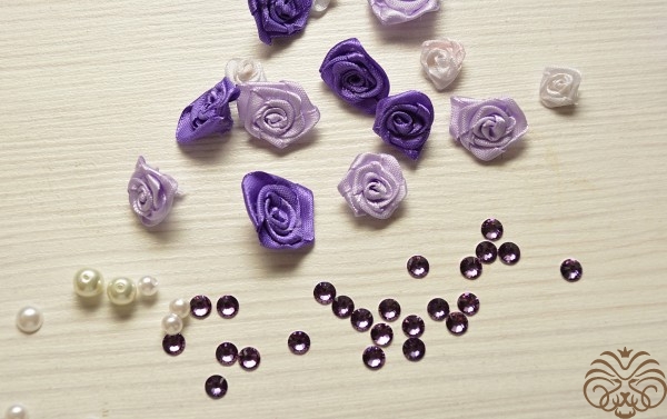 3. бусинки жемчуга- цвет айвори и белый, стразы сиреневые клеевые