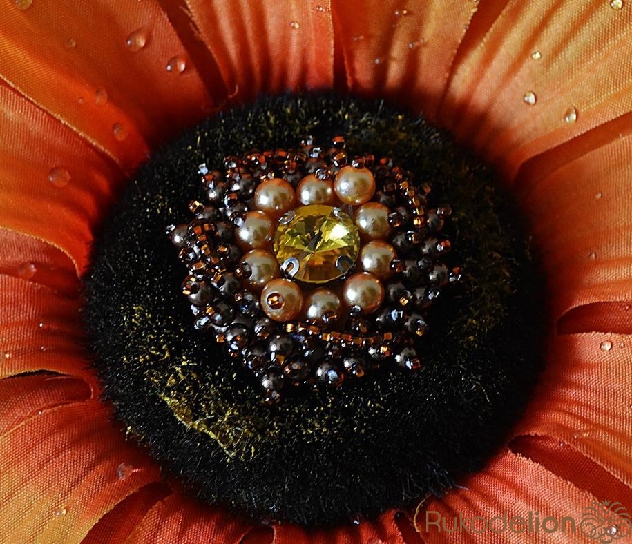 Далее начинаем обшивать вокруг него бусины большего размера.