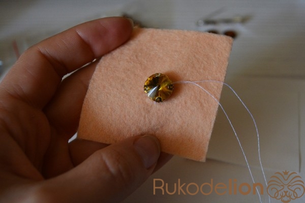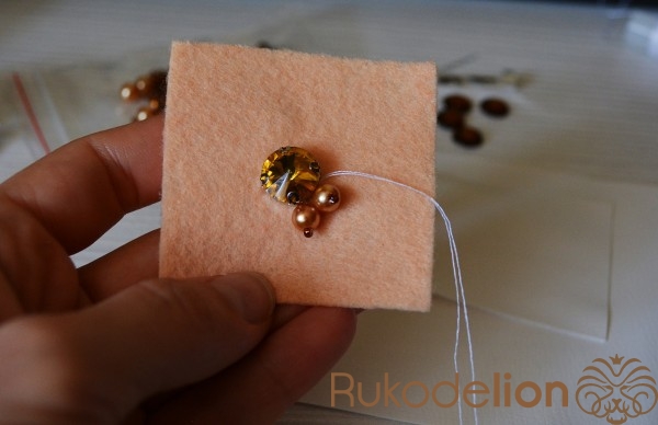 На иголочку набираем бусинку-бисеринку- далее иголку продеваем через бусину и потом уже пришиваем к фетру.