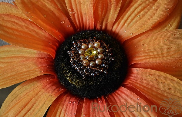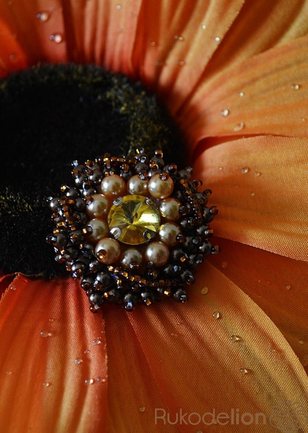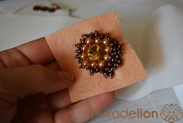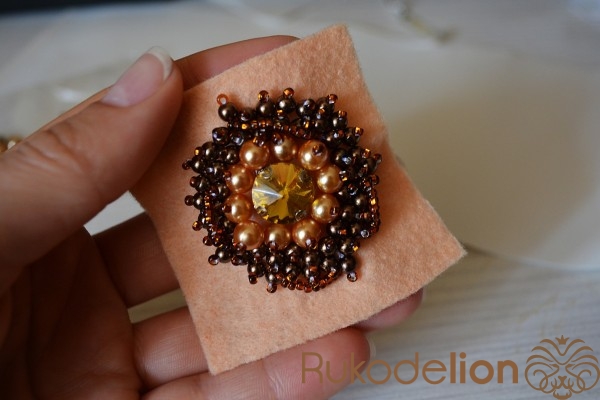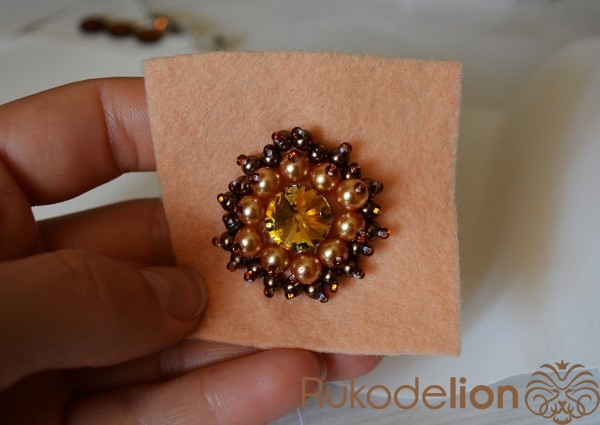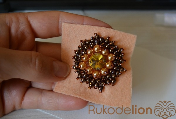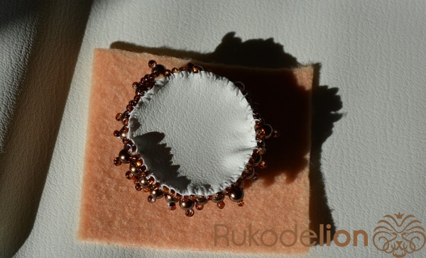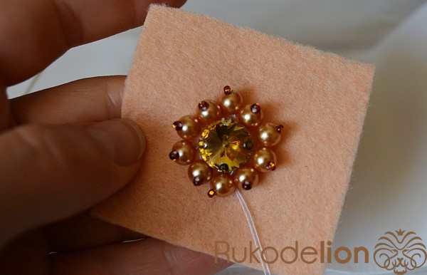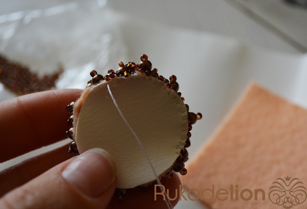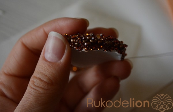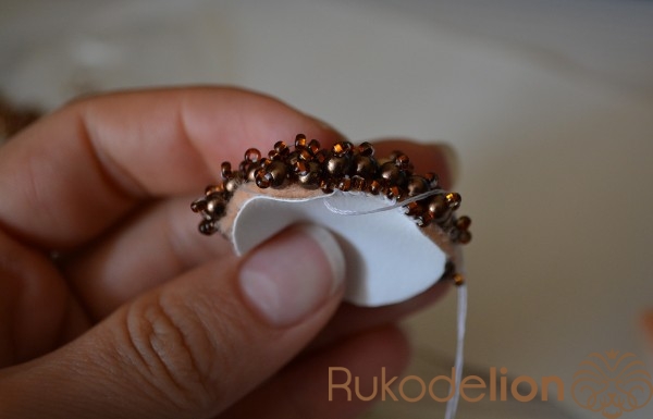 Далее начинаем обшивать вокруг него бусины большего размера.