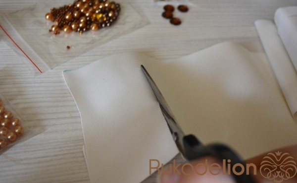 Вырезаем небольшой квадрат размером 6-10 см. На самом деле размер зависит от того сколько, бусинок вы планируете нашить.