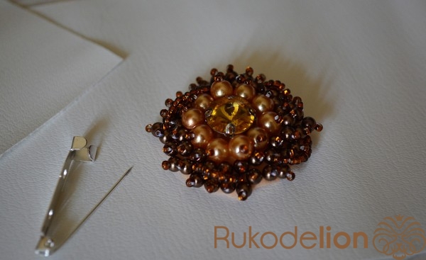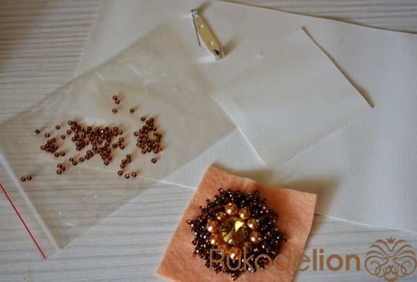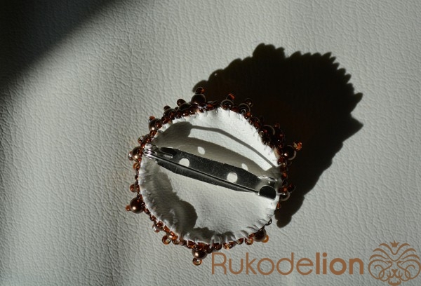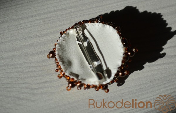 Теперь на заднюю сторону броши нужно пришить кусочек кожи.