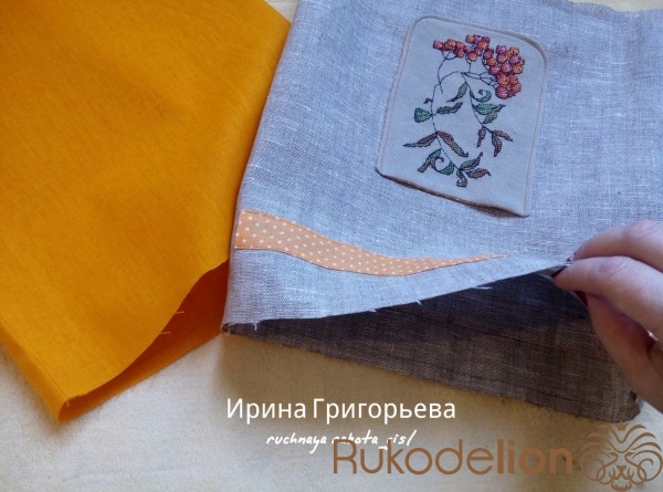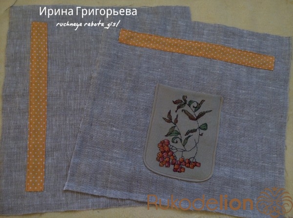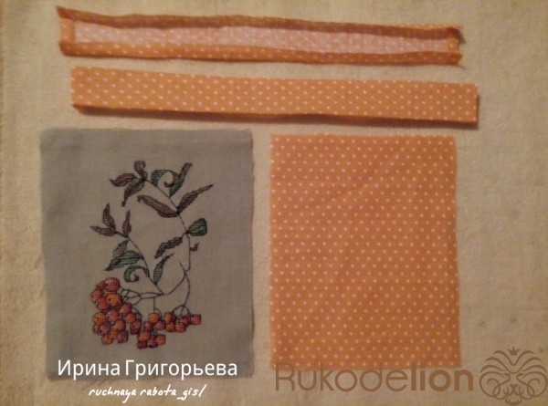 - детали для кармана 11/14см (вышитый сюжет и оранжевая в горох);