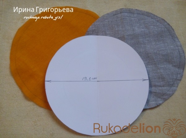 - добавим по 1см с каждой стороны, получим диаметр донышка с припуском на швы