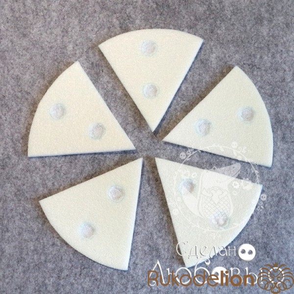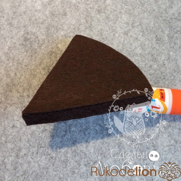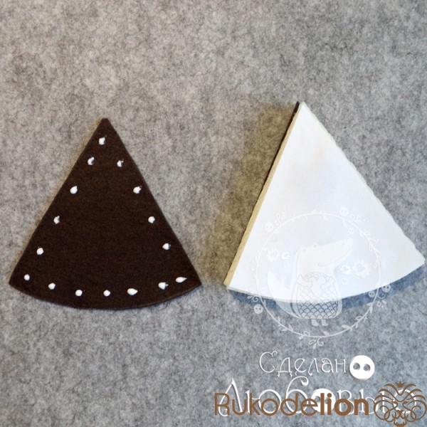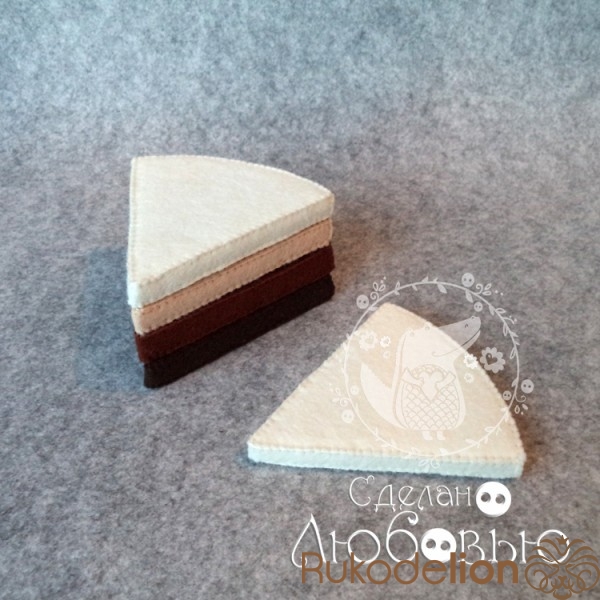 Таким образом, собираем весь кусок торта, 3 "коржа" и 2 "крема". Склеенные заготовки обшиваем "через край" обычной швейной нитью в два сложения, при этом сильно не стягиваем, чтобы края не деформировались.
