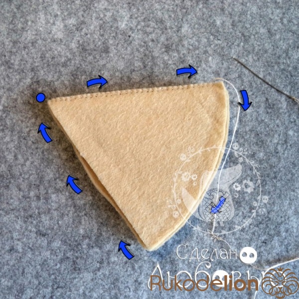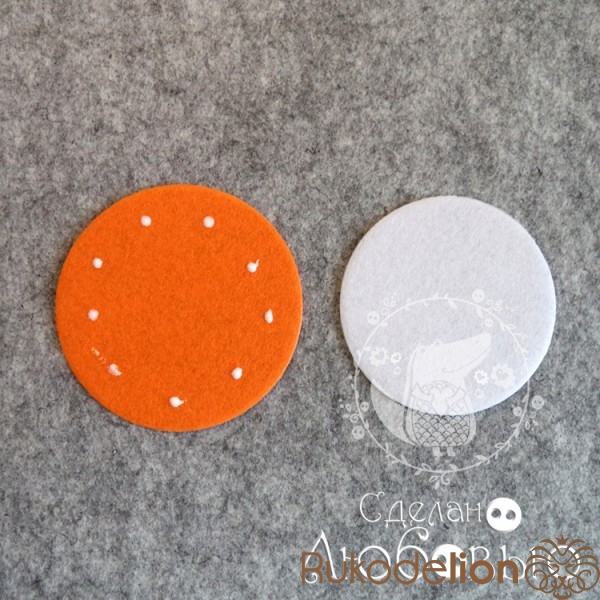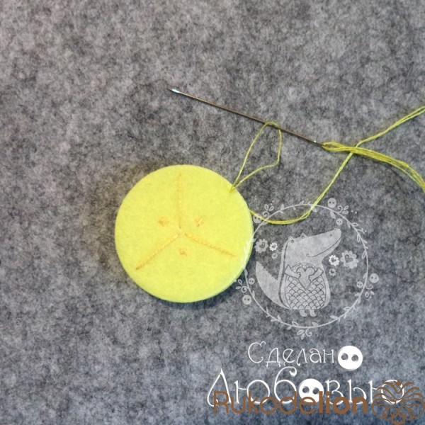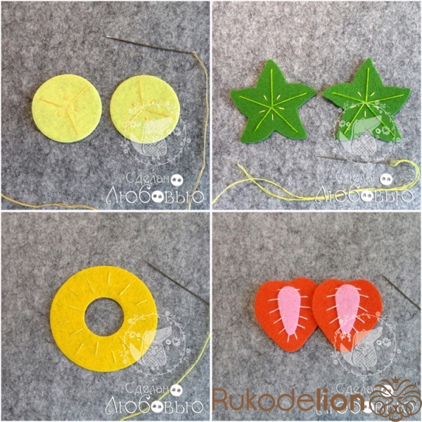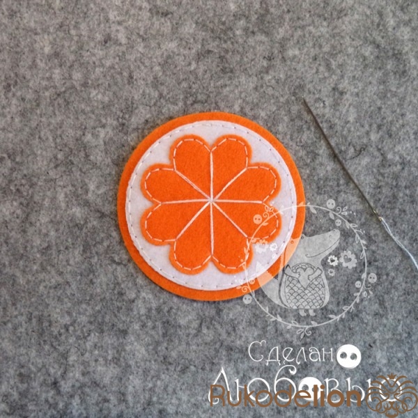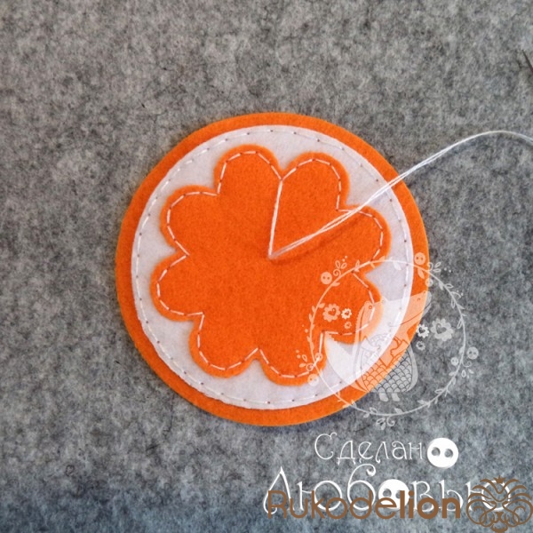 Подбираем ниточки в тон фетра, и пришиваем все детали швом "назад иголка". Я делала стежки примерно 2 - 3 мм, пришивала в одну нитку.