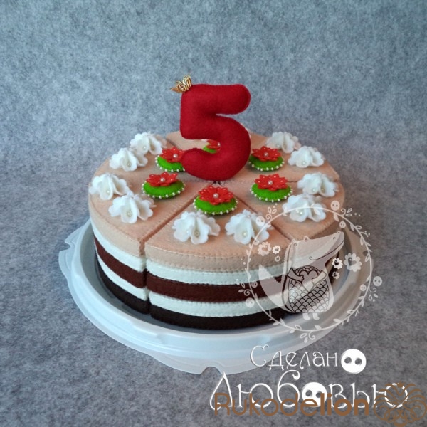Сколько смотрю поделок из фетра,продукты питания, меня восхищают.Сколько терпения надо иметь....Торт-шикарный,вы молодец !
