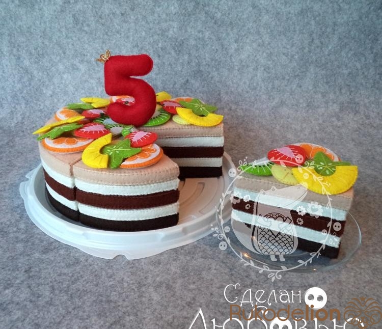 Таким образом, собираем весь кусок торта, 3 "коржа" и 2 "крема". Склеенные заготовки обшиваем "через край" обычной швейной нитью в два сложения, при этом сильно не стягиваем, чтобы края не деформировались.