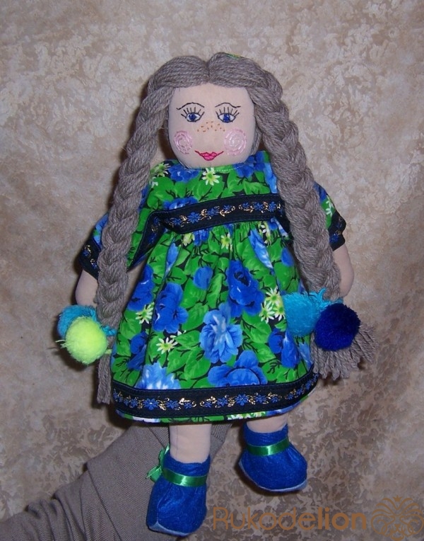 Пошив куклы-тело и одежда(платье и штанишки) шьётся на машинке,можно вручную, лицо вышивается мулине.