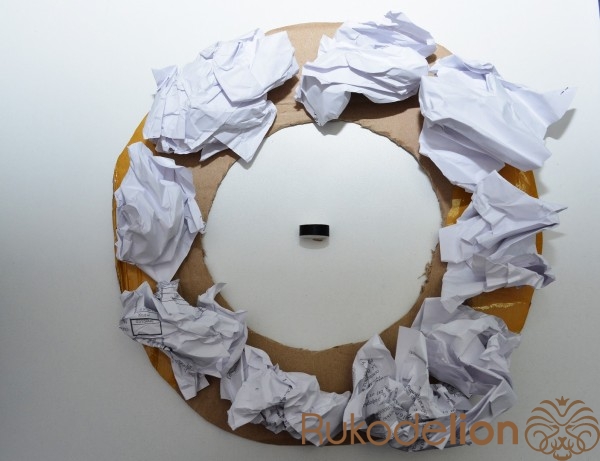 Нужно придать вашему кругу-кольцу немного объема. Это можно сделать с помощью чего угодно: поролон, бумага.