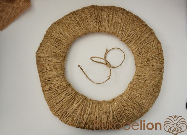 Из картона вырезаем кольцо нужного вам диаметра. Это размер вашего венка. У меня в диаметре он получился 30 см.