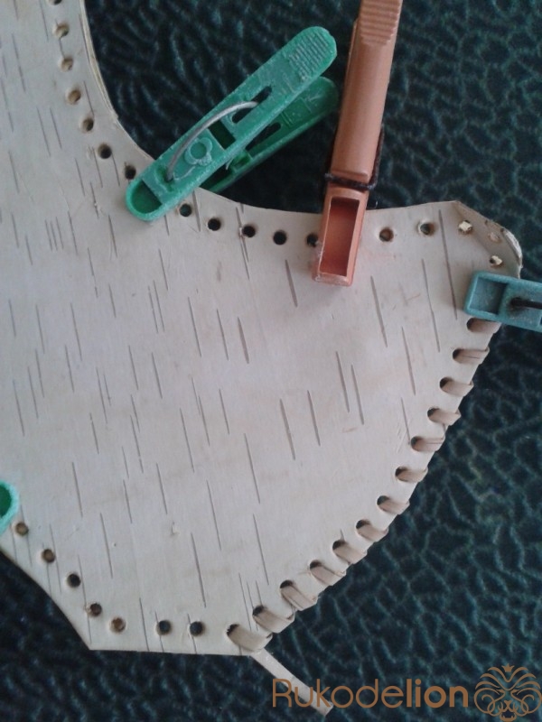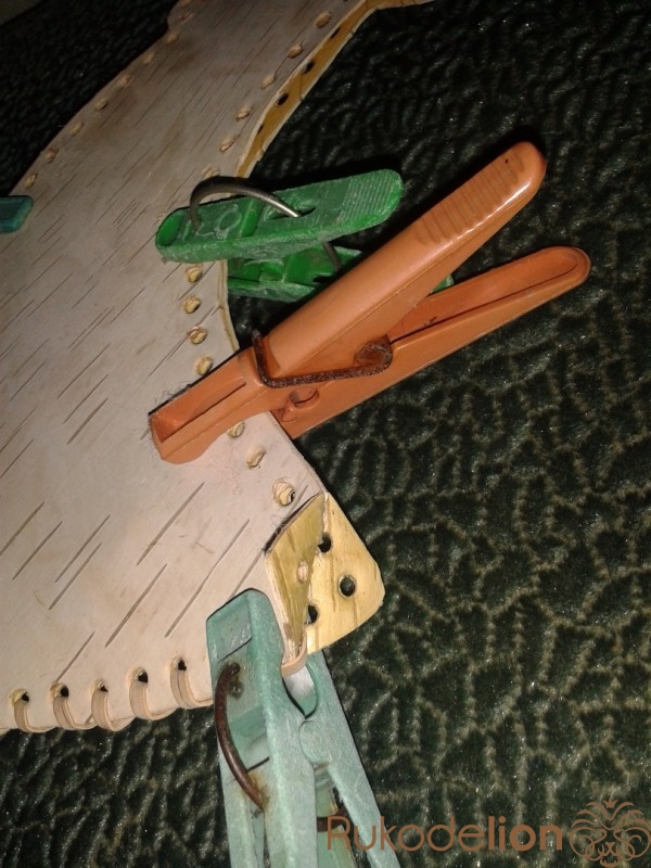 Из той же самой бересты, перевернув её обратной стороной, сделаем по периметру рамочку, дабы коврик смотрелся аккуратно.