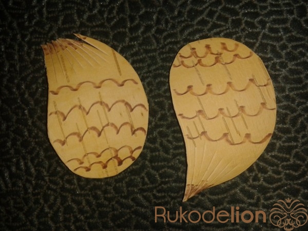 С помощью электровыжигателя выделяем гребешок, нос и бородку.
