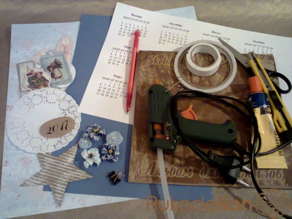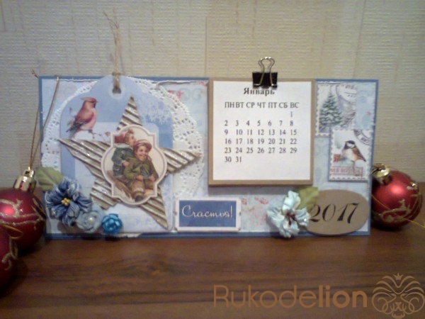 Настольный календарь на новый 2017 год в технике скрапбукинг