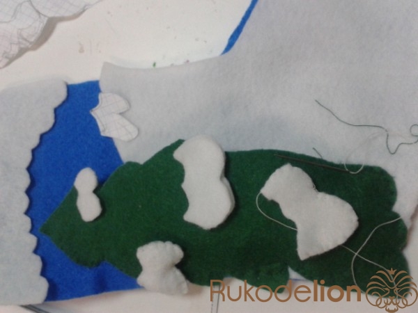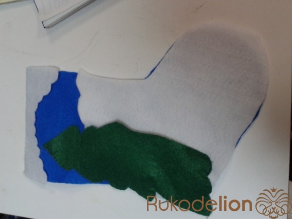 Вырезаем из белого фетра верх сапожка, а из зеленого -елочку .