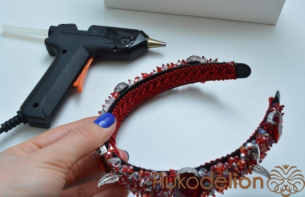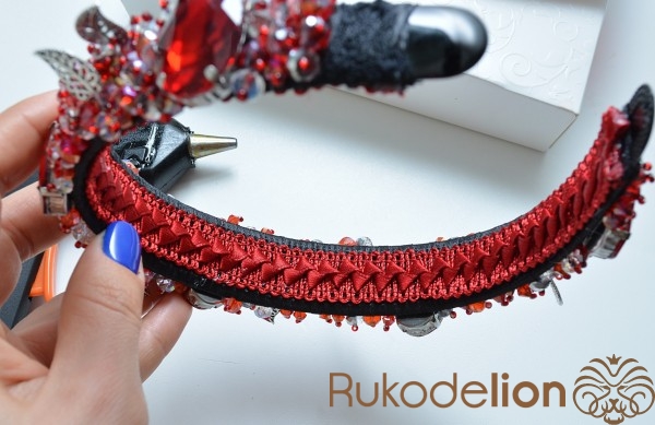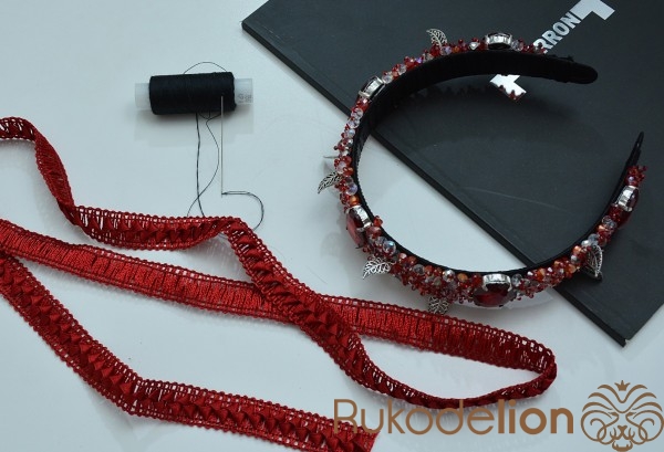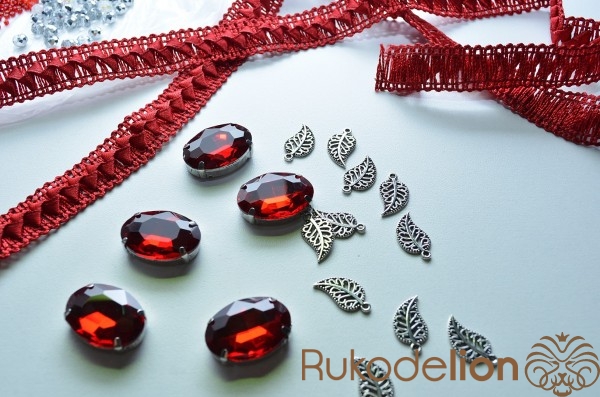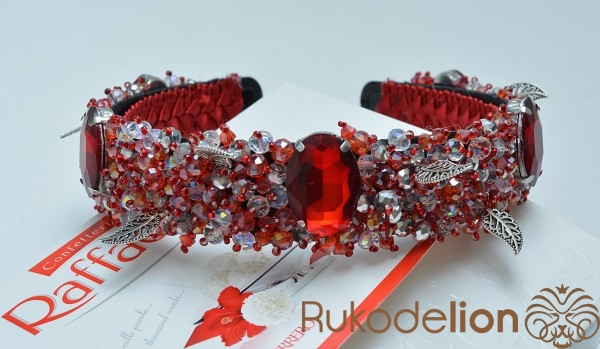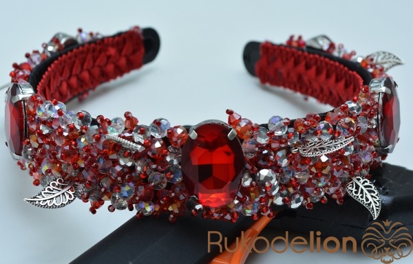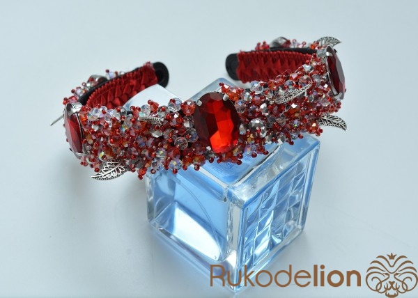 Красный цвет всегда в моде - классика жанра. Поэтому для горячих и смелых девушек представляю мастер класс по изготовлению аксессуара для волос с крупными камнями.