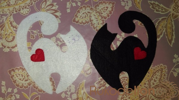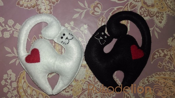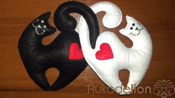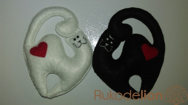 Влюблённые котики выполнены из фетра.  Внутри магнит.
