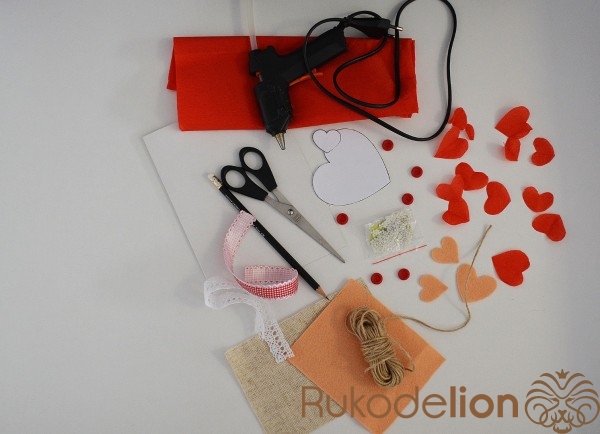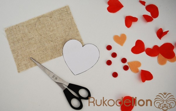 Теперь  берем кусочек мешковины и заранее распечатанный и вырезанный трафарет сердечка, любого размера и формы, на ваш вкус.