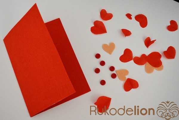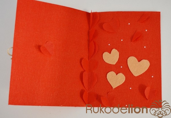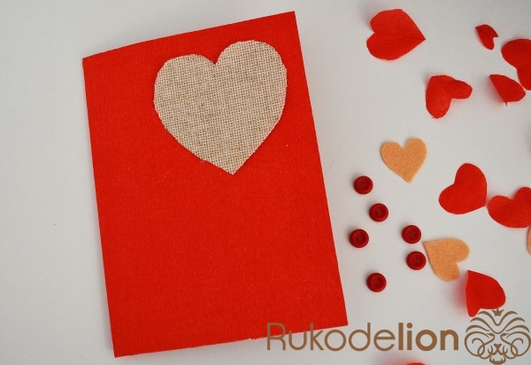 Приклеиваем на пустую часть открытки, чтобы они не смотрелись "голыми", приклеиваем в серединку сердца пуговичку.