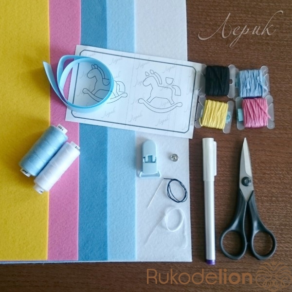 1. Жесткий фетр: белый, голубой, темно-голубой, желтый, розовый.