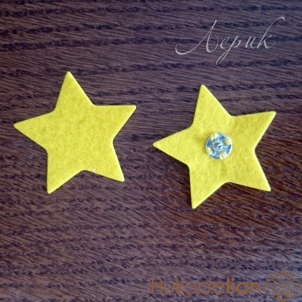 Вторую часть кнопки пришиваем в центр одной из звезд.