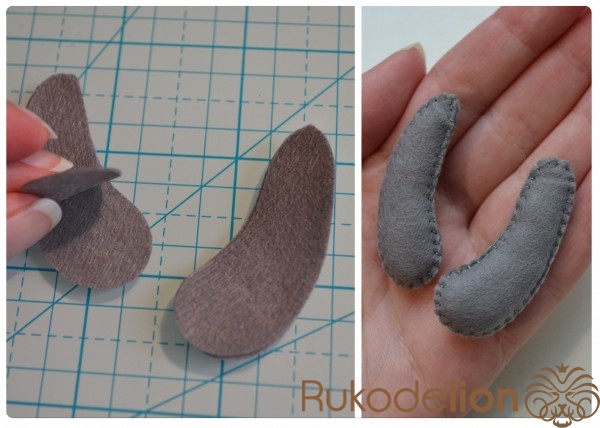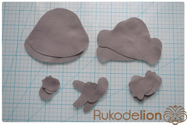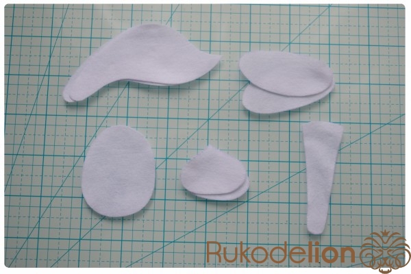 1. Фетр: серый, белый, черный, розовый, синий (я буду использовать тонкий (0,5мм) мягкий полиэстеровый испанский фетр)