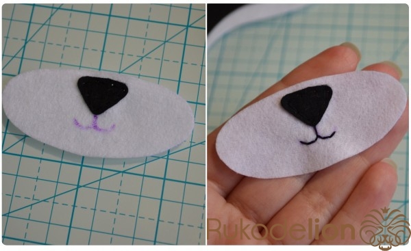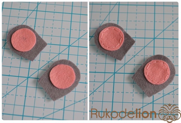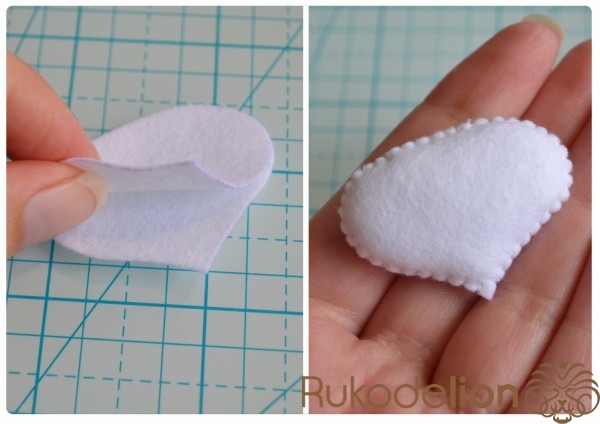 На синем фетре рисуем два круга диаметром 1 см. Обычно для этого я обвожу какую-нибудь полубусину.