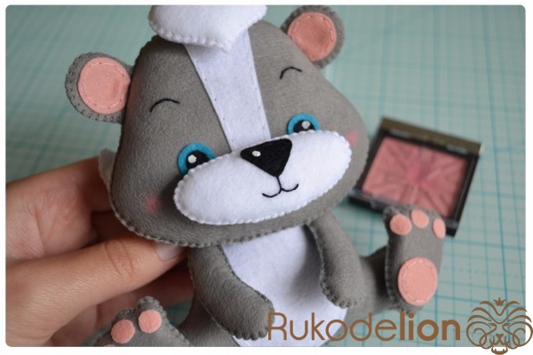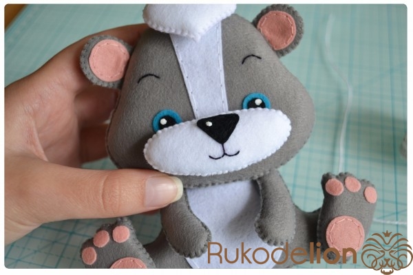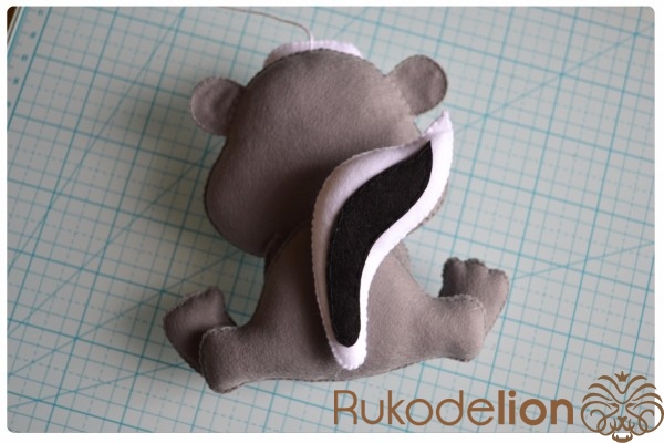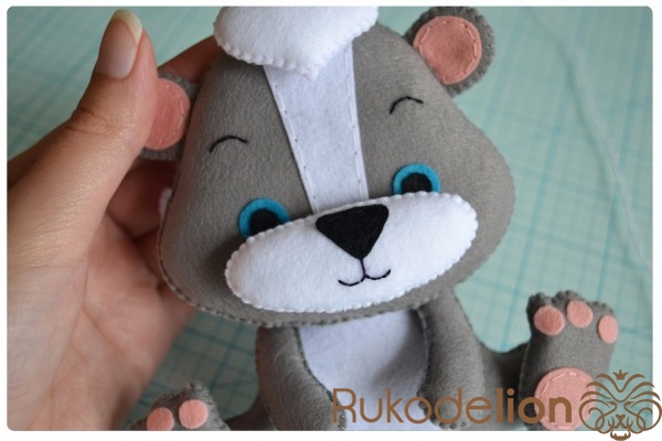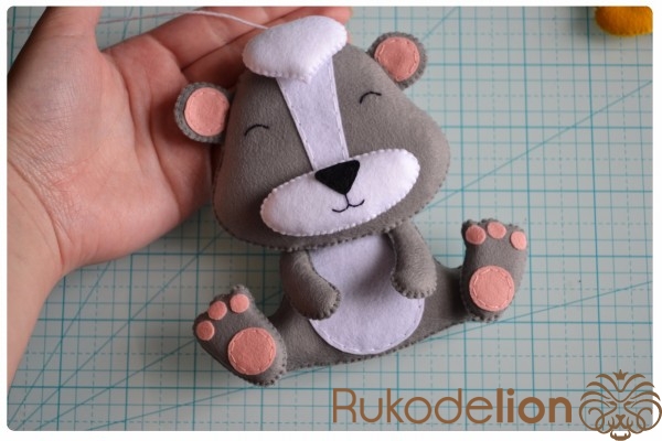 Привет, мои фетровые друзья! Сегодня предлагаю сшить вот такого лесного жителя, скунса! Вы можете сшить его из черного фетра, да бы максимально точно передать его натуральный внешний вид. Я же решила сделать его серым, чтобы не вешать на мобиль слишком темную фигурку. Мой скунс получился 13 см высотой.