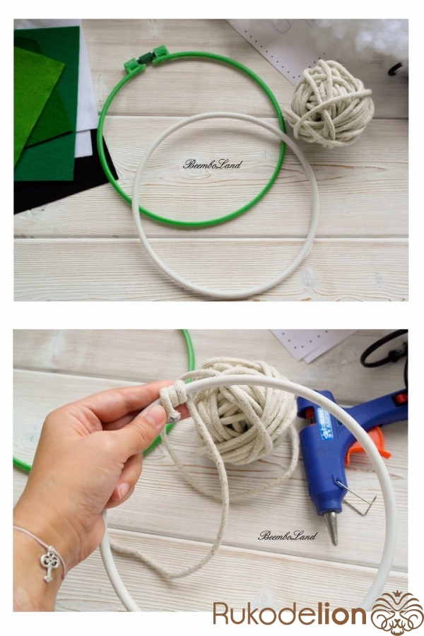 - Бельевая веревка или атласная лента (для обмотки пяльцев).