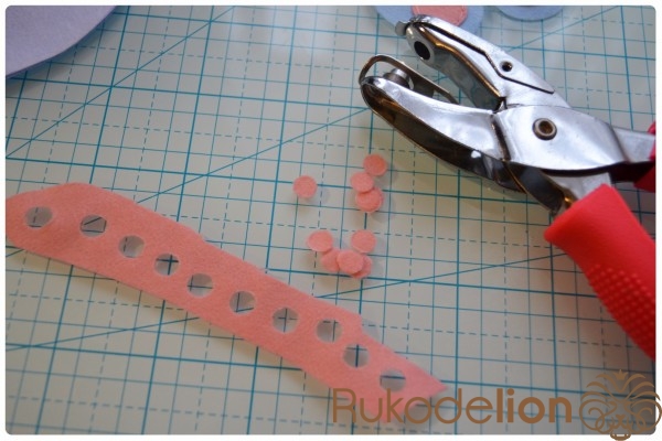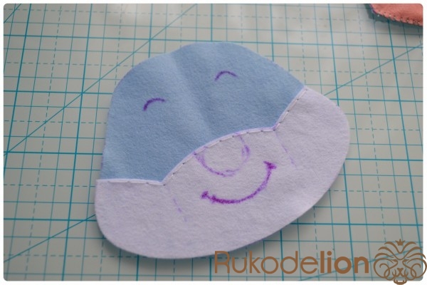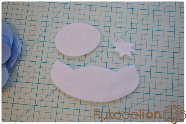2. Фетр: голубой, белый, розовый, черный, зеленый (я буду использовать мягкий, тонкий (0,5 мм), полиэстеровый, испанский фетр )