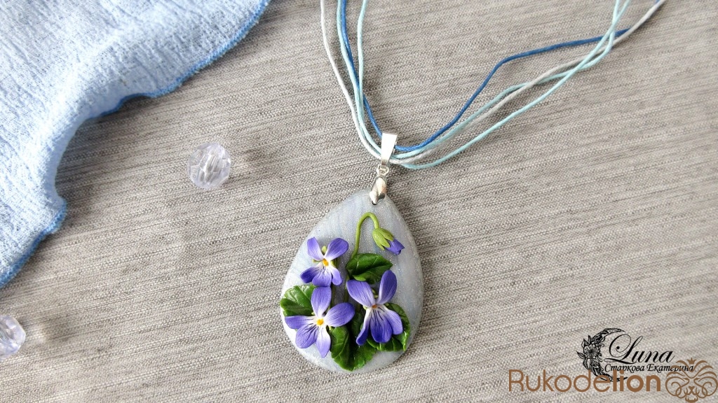 Видео-урок по лепке цветов фиалки и создания кулона с ними.