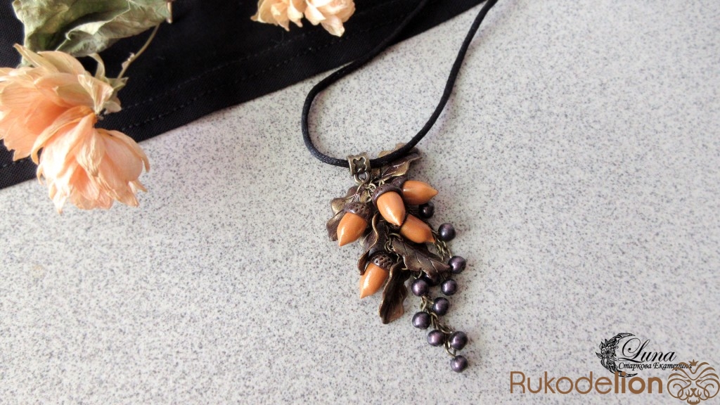 В этом видео мастер-классе я научу вас лепить интересные стилизованные желуди и листья с золотистым отливом и покажу, как из этих элементов можно собрать оригинальный осенний кулон ручной работы.