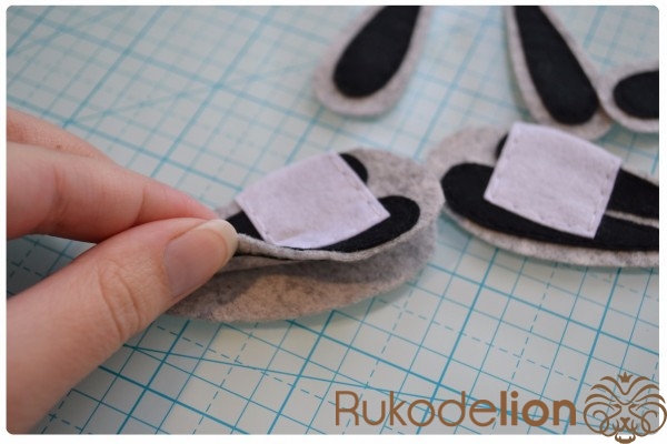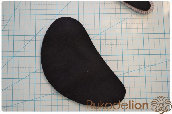 Приклеенные на белый фетр круги вырезаем отступая от черного края пару миллиметров. У нас получились замечательные глазки, которые мы приклеиваем поверх больших черных кругов