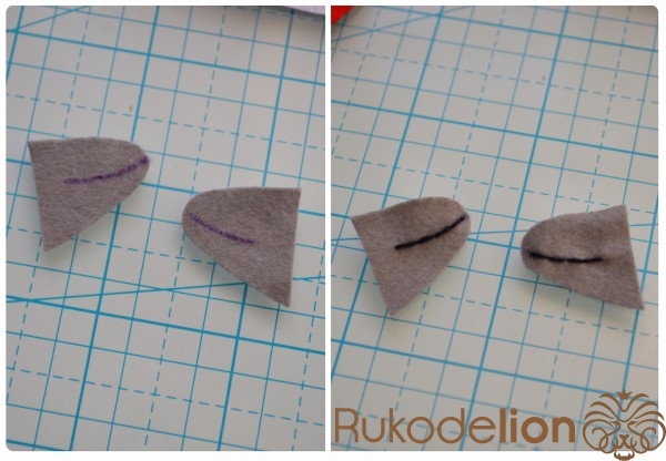 Переходим к клюву. Самоисчезающим маркером нарисуем будущий ротик. Обратите внимание, что нужно нарисовать обе линии на одном уровне, чтобы при сшивании две половинки рта совпали.