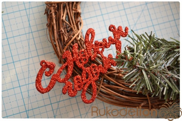 А теперь самый интересный этап - декорируем венок. Сейчас в преддверии Нового года можно найти много разных декорашек на новогодних базарах. Там можно найти и основу для венка и детали для его декора. Помимо основы ,я купила искусственные ягодки, листочки, веточки, а еще я нашла вот такую яркую надпись "С Новым Годом"