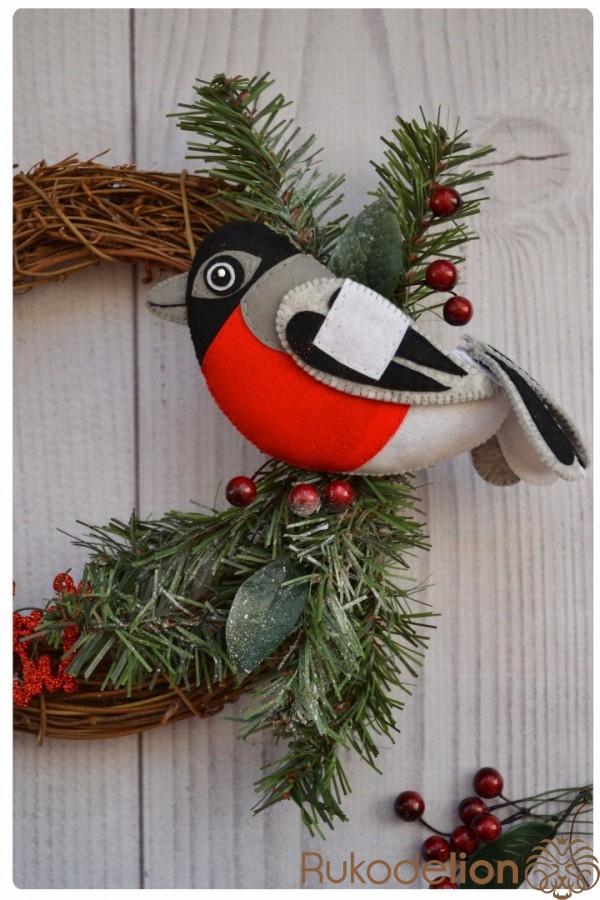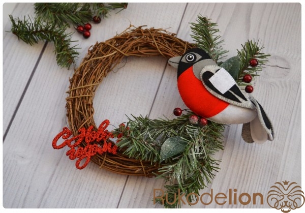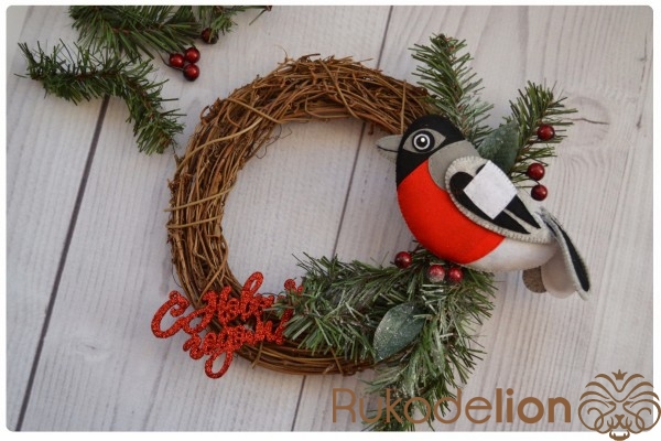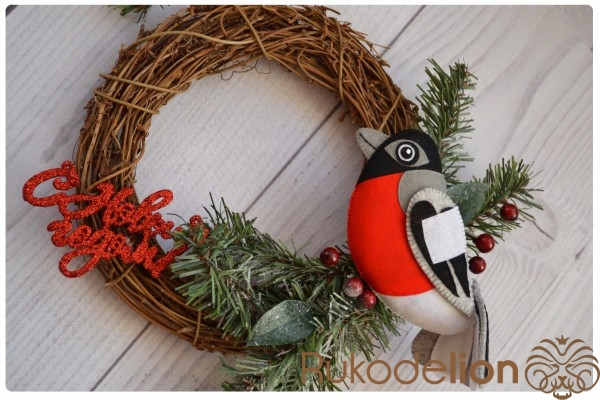 Новогодний венок с фетровым снегирем