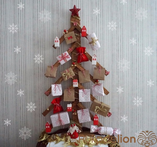 В нашем доме это деревянная елочка на которую можно подвесить подарки, в высоту она чуть больше метра. Дети смогут сами выбрать тот сюрприз, который хочется.