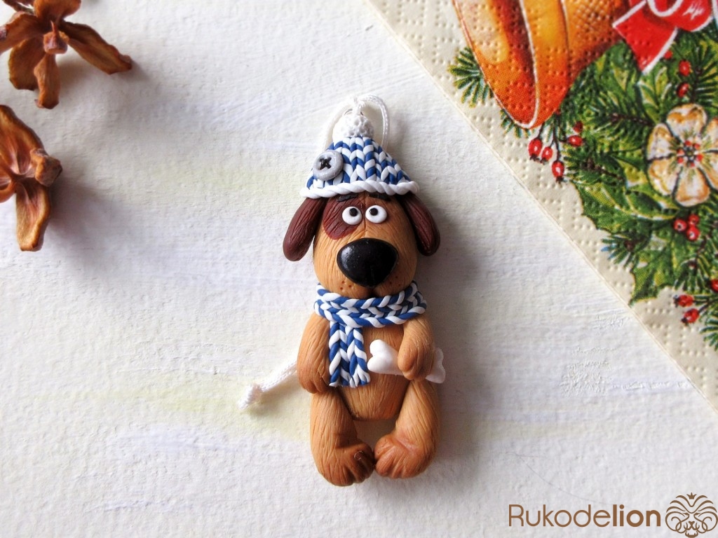 Хочу показать вам процесс лепки интересного сувенира в виде забавной собачки с косточкой.