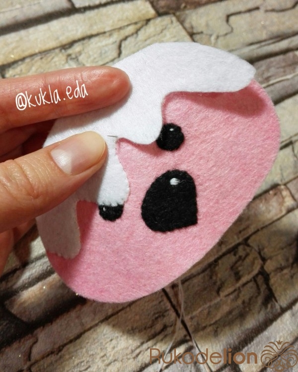 Красивое личико. Особое внимание уделяю созданию личика игрушки. Мордочка косяков не прощает. Поэтому все спорные моменты не ленюсь распороть и перешить, если есть необходимость. Предпочитаю пришивать детали. Кто-то клеит - это быстрее. Пятнышки на носике и глазках вышиваю. Если будете рисовать, не забудьте высушить, прежде чем шить дальше. Ушки вшиваю с двух сторон, оставляя отверстие посередине головы для набивки.