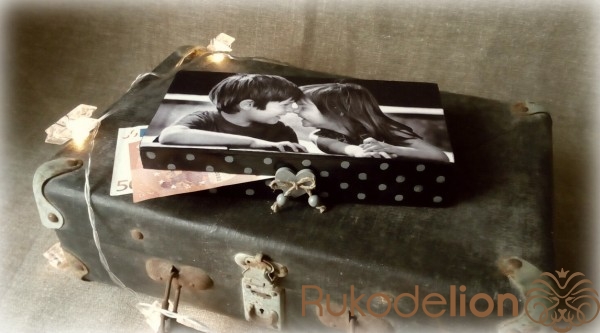 Ну что же, осталось покрыть серым цветом наше маленькое сердце и завязать бантик из бичевки, прикрепив на концы бусины. Декоротивные элементы я приклеивала, используя монтажный клей "Момент". Ура! Все готово!!! Наша купюрница под названием "Весна бывает тоже черно-белой" готова попасть в руки влюбленной парочки "твикс"!!!!)))))