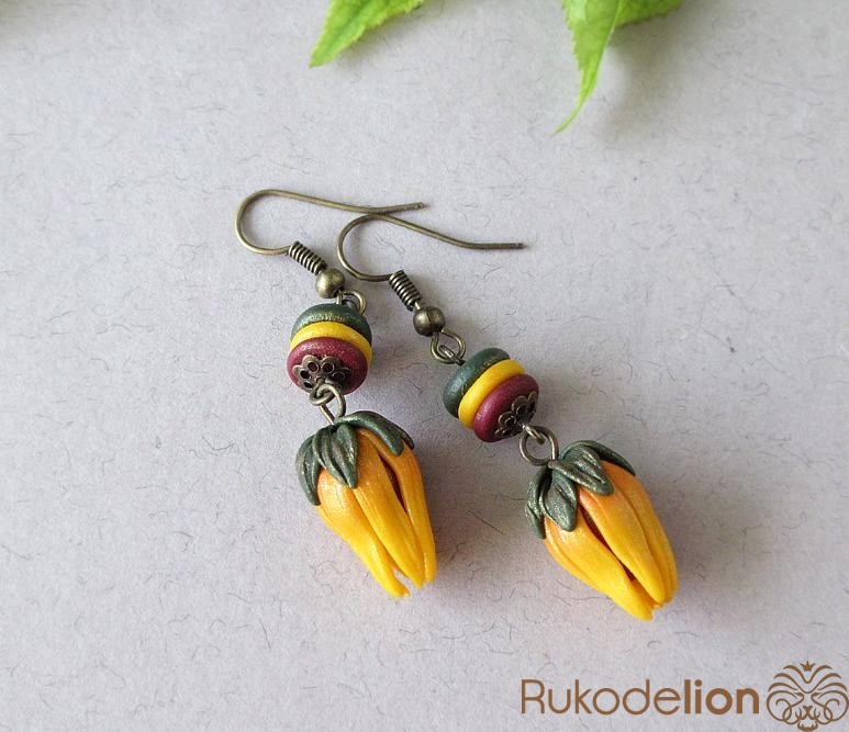 Я очень люблю бижутерию растительной тематики, поэтому в данном мастер-классе я хочу показать вам, как из полимерной глины делать серьги с яркими бутонами желтых цветов.