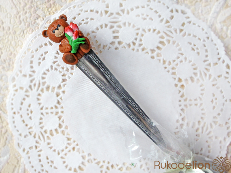 В этом уроке я хочу показать, как можно сделать забавный декор для ложки в виде медведя с букетом тюльпанов. Такая ложечка может стать замечательным сувениром, при этом она полностью функциональная, ее можно мыть под краном и использовать как обычную чайную ложку.