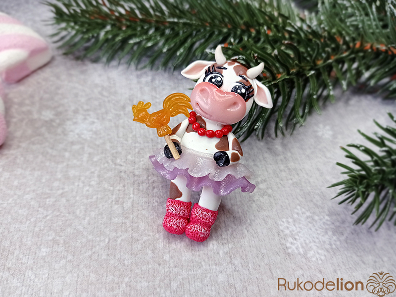 Как известно, согласно китайскому календарю, символом наступившего года является бык. Поэтому я предлагаю сделать очень милый символ года в виде девочки-коровки с леденцом.